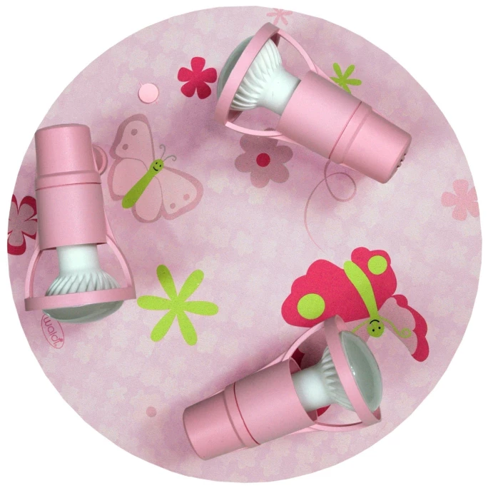 Mit der dekorativen Deckenleuchte PAPILLON aus dem Hause Waldi-Leuchten schmücken Sie das Kinderzimmer auf ganz besondere Weise. Der hochwertige Druck ziert Schmetterlinge und Blumen in harmonischer Farbgebung und setzt wunderbare Akzente im Mädchenzimmer. Die drei beweglichen Strahler aus Kunststoff können nach Belieben verstellt werden. Leuchtmittel sind in der Lieferung nicht enthalten. Seit vielen Jahren gehört die Firma Waldi-Leuchten zu den führenden Herstellern von Kinderlampen. Das innovative Design und das technische Know-How zeichnet die Lampenkollektionen Jahr für Jahr aus. Die in Deutschland hergestellten Kinderlampen werden ausschließlich aus kinderfreundlichen Materialien produziert. Kombinieren Sie die Deckenleuchte mit der Tischleuchte aus der gleichnamigen Serie PAPILLON und erfreuen Sie sich an dem kindlichen Design aus dem Hause Waldi-Leuchten.